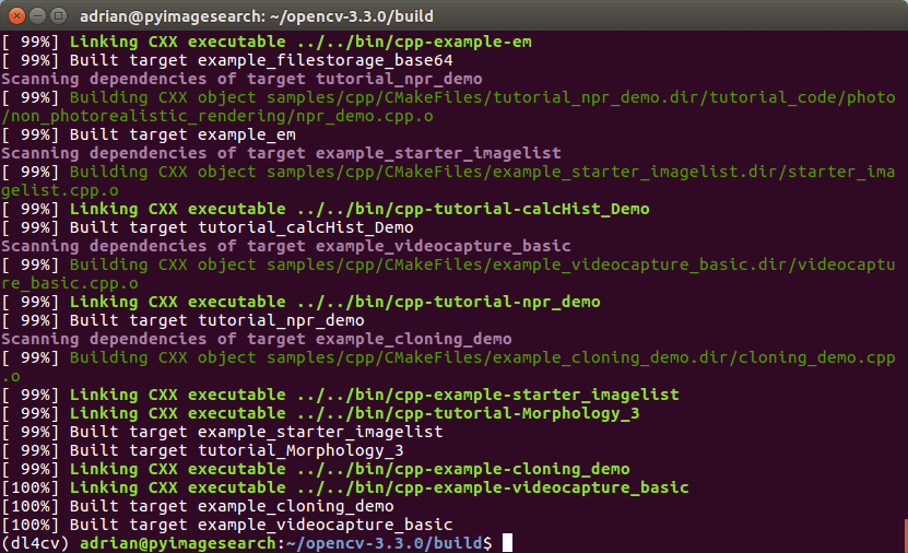 Now we are now ready to compile OpenCV with 4 cores: