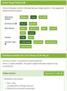 Notice how I have selected Linux => x86_64 => Ubuntu => 16.04 runfile (local) .