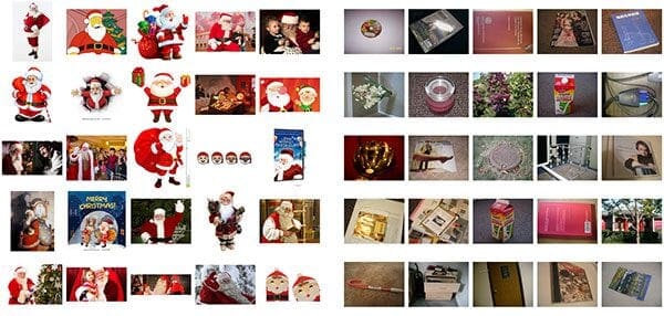 In this case, we can see a sample of the 461 images containing Santa gathered using the technique (Figure 1, left).