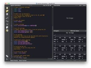 Once youāve installed the OpenMV IDE, fire it up. We’ll be doing all of our coding in the OpenMV IDE.