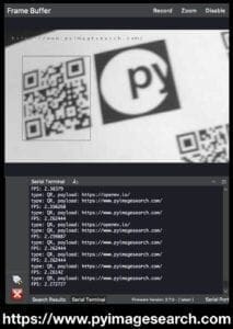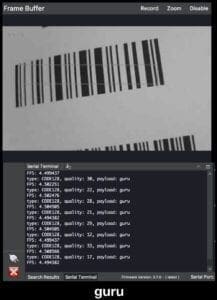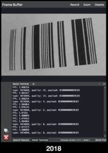 Before long, if you’re printing to the terminal, youāll see the data such as FPS or barcode information — thatās your queue that everything is working. You’ll also see a live view from the camera sensor in the top right viewfinder.