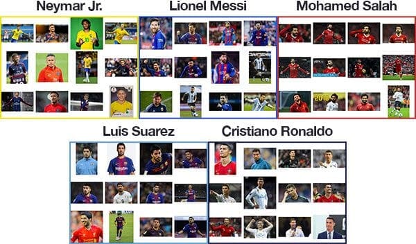 Our unsupervised learning DBSCAN approach generated five clusters of data. Unfortunately, a single image of Lionel Messi wasn’t clustered with the other pictures of him, but overall this method worked quite well.