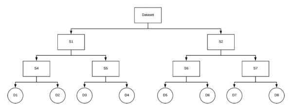 We then recursively apply this process, building a tree as we go, until we are left with a child node.