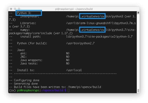 - (1) NEON and (2) VFPv3 optimization flags have been enabled. These lines ensure that you compile the fastest and most optimized OpenCV for the ARM processor on the Raspberry Pi (Lines 7 and 8).