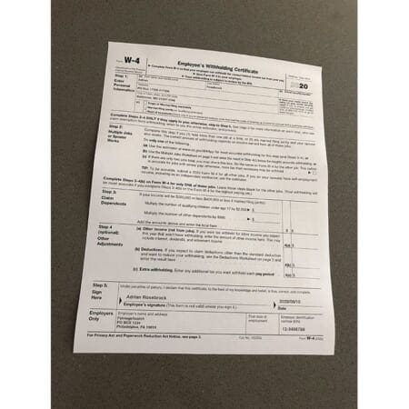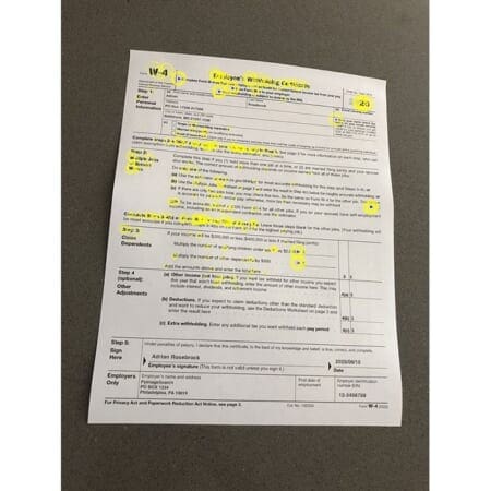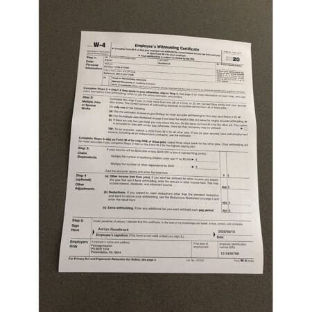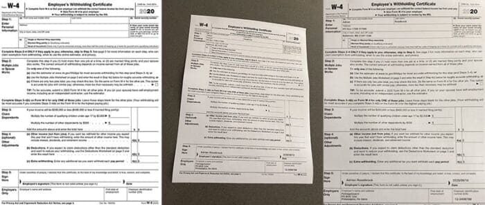 I have partially filled out a W-4 form with faux data and then captured a photo of it with my phone (middle).