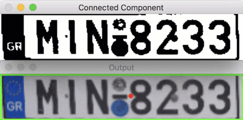 - The second method shows a practical, real-world example of connecting component analysis. We threshold a license plate and then use connected component analysis to extract just the license plate characters.