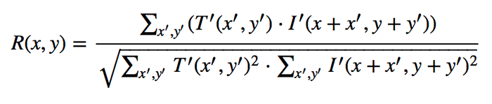 For the full derivation of the correlation coefficient, including all other template matching methods OpenCV supports, refer to the OpenCV documentation.
