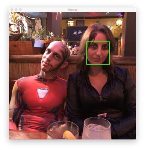 Notice that my wife’s face (errr, Black Widow?) was detected, but apparently, dlib’s HOG + Linear SVM face detector doesn’t know what Iron Man looks like.
