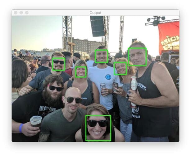 A bunch of my friends got together for a concert a few years ago. And while there are clearly eight faces in this image, only six of them are detected.