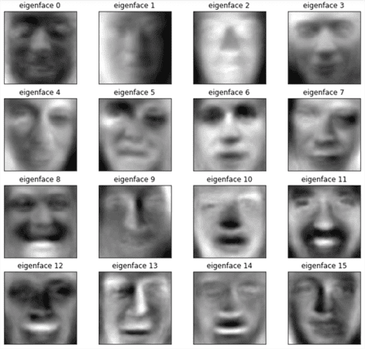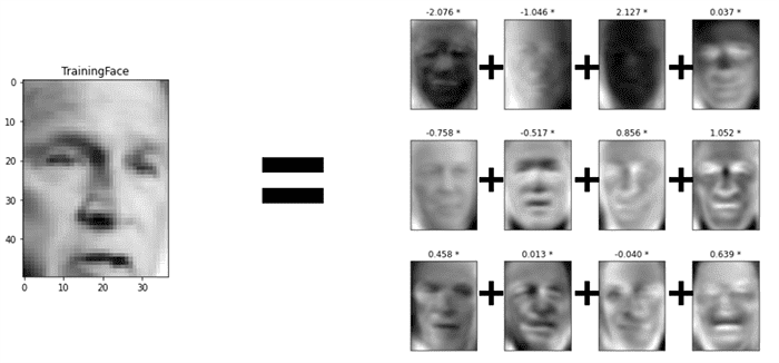 Furthermore, the βprincipal componentsβ (i.e., the eigenvectors, or the βeigenfacesβ) could be used to reconstruct faces from the original dataset. This implies that a face could be represented (and eventually identified) as a linear combination of the eigenfaces: