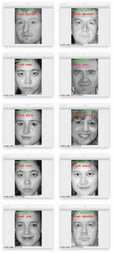 Figure 5 displays a montage of results from our LBP face recognition algorithm. We’re able to correctly identify each of the individuals using the LBP method.