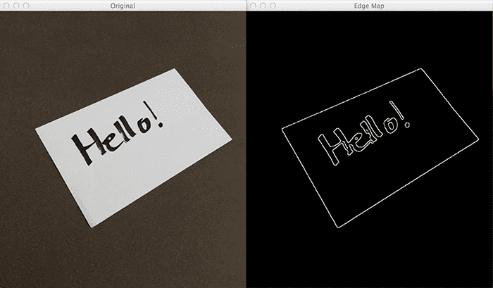 On the left, we have our original input image. On the right, we have our image with detected edges — commonly called an edge map.