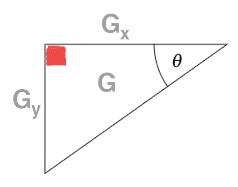 Using both Gx and Gy, we can apply some basic trigonometry to compute the gradient magnitude G, and orientation ?: