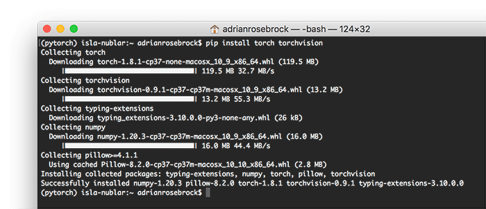 Note: Need help installing PyTorch? To start, be sure to consult the official PyTorch documentation. Otherwise, you may be interested in my pre-configured Jupyter Notebooks inside PyImageSearch University which come with PyTorch pre-installed.