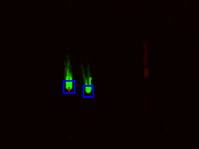 The longer answer is that the thermal camera looks for two things close together: a hot spot (which is a very bright part of the thermal image) and a region of turbulent motion. So, if I can find turbulent motion close to a very hot spot and the turbulent motion is mostly above the hot spot (remember that hot air rises), the area where the hot spot and turbulent motion overlap (or where they overlap if suitably dilated) is a likely location to find flames.