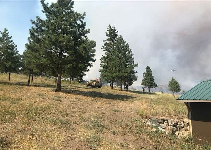 An important bit of context: I live in north central Washington State, which despite Washington’s reputation, is a pretty dry place, and summers can often be quite warm. It has been an extremely dry spring (most of the eastern part of the state is in a serious drought), and we had an incredible heat wave in late June. So vegetation was incredibly dry. How dry? Well, fire researchers take core samples from trees to evaluate fuel dryness. Core samples taken in my area two weeks before the fire found that living trees were dryer than kiln-dried lumber with a moisture content of about 2%. Your typical sheet of paper has a 3% moisture content.