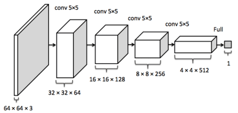 As seen in Figure 3, we are taking a random noise vector as input and giving a complete image as the output. Let’s look at the discriminator architecture in Figure 4.