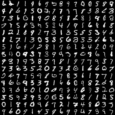 $ python dcgan_mnist.py --output output [INFO] loading MNIST dataset... [INFO] building generator... [INFO] building discriminator... [INFO] starting training... [INFO] starting epoch 1 of 20... [INFO] Generator Loss: 4.6538, Discriminator Loss: 0.3727 [INFO] starting epoch 2 of 20... [INFO] Generator Loss: 1.5286, Discriminator Loss: 0.9514 [INFO] starting epoch 3 of 20... [INFO] Generator Loss: 1.1312, Discriminator Loss: 1.1048 ... [INFO] Generator Loss: 1.0039, Discriminator Loss: 1.1748 [INFO] starting epoch 17 of 20... [INFO] Generator Loss: 1.0216, Discriminator Loss: 1.1667 [INFO] starting epoch 18 of 20... [INFO] Generator Loss: 1.0423, Discriminator Loss: 1.1521 [INFO] starting epoch 19 of 20... [INFO] Generator Loss: 1.0604, Discriminator Loss: 1.1353 [INFO] starting epoch 20 of 20... [INFO] Generator Loss: 1.0835, Discriminator Loss: 1.1242