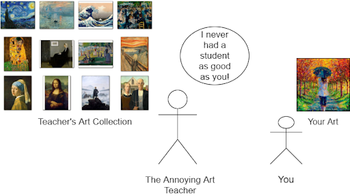 All this while, your art teacher also starts becoming a better judge of the paintings shown to him. With just a glance, he can name the artists and artworks you’re attempting to replicate. Finally, the day of reckoning arrives, and you submit your final work (Figure 2).