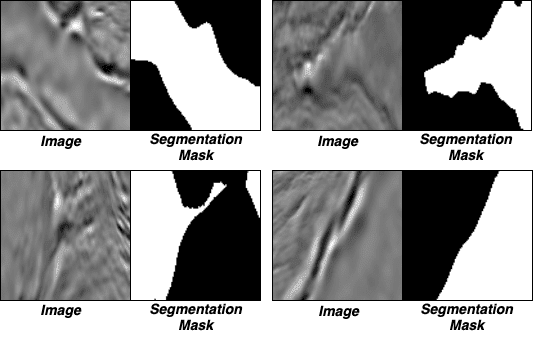 We use a sub-part of this dataset which comprises 4000 images of size 101×101 pixels, taken from various locations on earth. Here, each pixel corresponds to either salt deposit or sediment. In addition to images, we are also provided with the ground-truth pixel-level segmentation masks of the same dimension as the image (see Figure 2).
