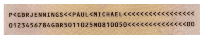 $ python ocr_passport.py --image passports/passport_01.png P<GBRJENNINGS<<PAUL<MICHAEL<<<<<<<<<<<<<<<<< 0123456784GBR5011025M0810050<<<<<<<<<<<<<<00