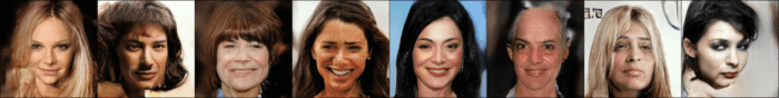 are passed through the generator. Notice the transition of images happens smoothly, without any abrupt changes, as we move from left to right in the figure. This clearly shows that the PGAN has done a good job at learning the semantic structure of the underlying data distribution.