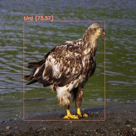 Figure 16 is an image of an Eagle, which is well localized by the model and classified as a Bird. Unfortunately, the Pascal VOC dataset does not have an Eagle class, but the model does a great job predicting it as a bird.