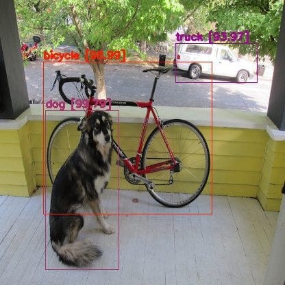 We can see from Figure 9 that the model correctly predicts a dog, bicycle, and truck with almost 100% high confidence.