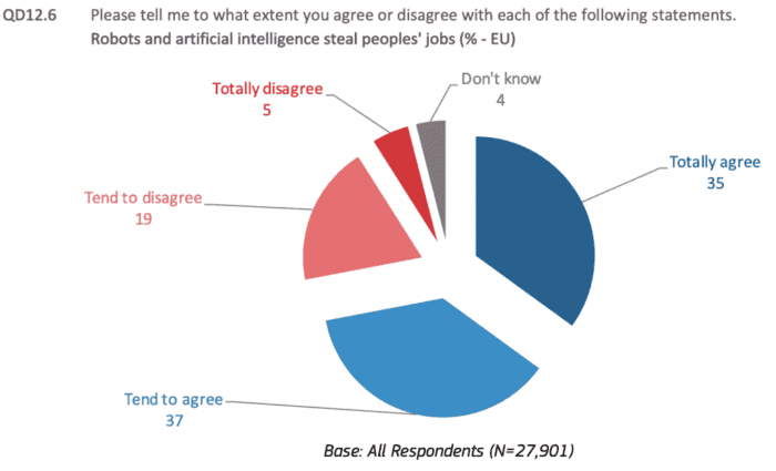 - 72% agree that robots and artificial intelligence steal people’s jobs.
