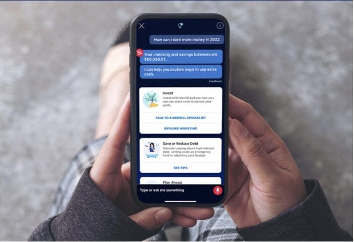 AI in bank applications helps customers by addressing their queries even on weekends and holidays. AI-based virtual assistants and chatbots provide personalized content for credit reports, loan offers, payment alerts, fraudulent activities, financial summaries, and customer analysis (e.g., Bank of America’s Erica virtual assistant, see Figure 2).