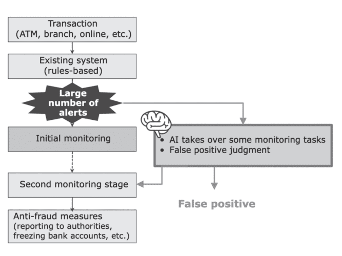 Most fraud detection systems use rule-based algorithms to trigger alerts in conditions such as “amount paid” and “number of deposits.” However, such vague rules can lead to false positives and unnecessary alerts, increasing staff workload. To improve efficiency, AI can learn from the past judgments made by the fraud monitoring staff and automatically filter out false positives based on similar patterns. These algorithms consider variables such as transaction amount, time, card use frequency, IP address of purchase, etc. (Figure 5).
