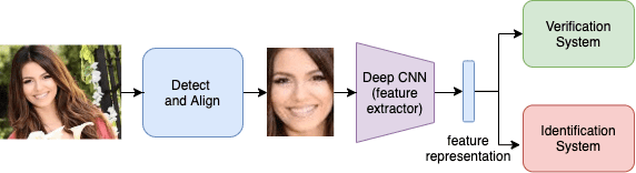 Figure 3 shows a basic pipeline for performing face verification. The input to the pipeline is the face image and the face id to be verified, and the output is a binary decision of whether the image belongs to the person with the face id.