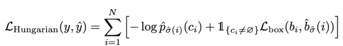 Now that we have matched the predictions to the ground truth, we apply the Hungarian loss for all matched pairs.