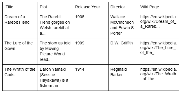 - Work with the Wikipedia Movie Plots Dataset: This dataset contains thousands of movies, including titles, genres, directors, and detailed plot summaries. We will focus on plot summaries to generate embeddings for semantic search.