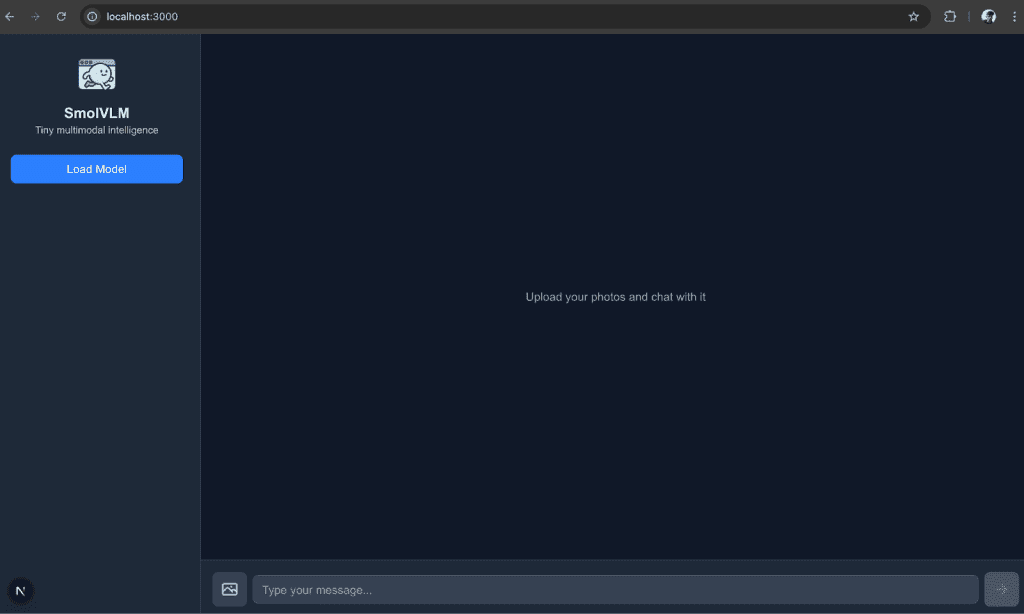 In this project, we built a browser-based multimodal chat application powered by the SmolVLM model from Hugging Face. The app allows users to upload images and interact with an AI assistant that can analyze visuals and generate text responses in real time. Key features include WebGPU acceleration, streaming token updates, and progress tracking during model loading. The interface supports Markdown formatting, safe HTML rendering, and smooth animations for a responsive user experience. By leveraging libraries such as @huggingface/transformers, better-react-mathjax, dompurify, framer-motion, and marked, we created a robust, interactive, and secure chat system that showcases the power of modern multimodal AI directly in the browser.
