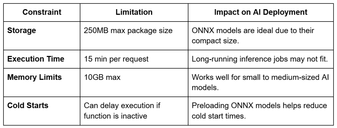 While AWS Lambda is great for serverless AI deployment, it has some limitations: