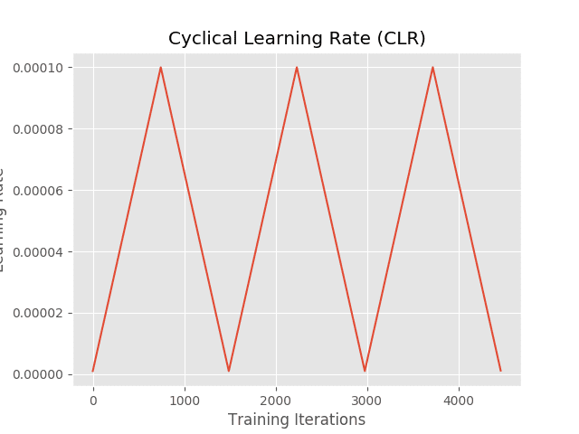 # define the minimum learning rate, maximum learning rate, batch size, # step size, CLR method, and number of epochs MIN_LR = 1e-6 MAX_LR = 1e-4 BATCH_SIZE = 32 STEP_SIZE = 8 CLR_METHOD = "triangular" NUM_EPOCHS = 48