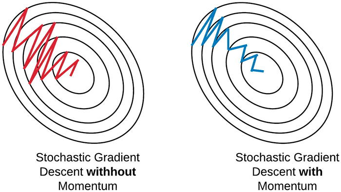 SGD has a problem when navigating areas of the loss landscape that are significantly steeper in one dimension than in others (which you’ll see around local optima).