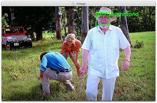 Note: Recall that our model was trained on four members of the original cast: Alan Grant, Ellie Sattler, Ian Malcolm, and John Hammond. The model was not trained on Donald Gennaro (the lawyer) which is why his face is labeled as “Unknown”. This behavior was by design (not an accident) to show that our face recognition system can recognize faces it was trained on while leaving faces it cannot recognize as “Unknown”.
