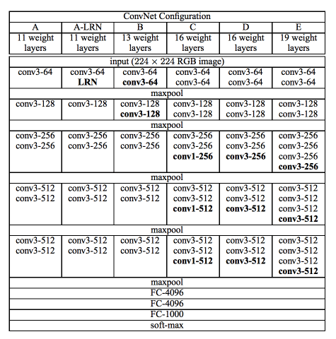 Simonyan and Zisserman found training VGG16 and VGG19 challenging (specifically regarding convergence on the deeper networks), so in order to make training easier, they first trained smaller versions of VGG with less weight layers (columns A and C) first.