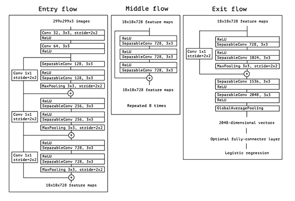 The original publication, Xception: Deep Learning with Depthwise Separable Convolutions can be found here.