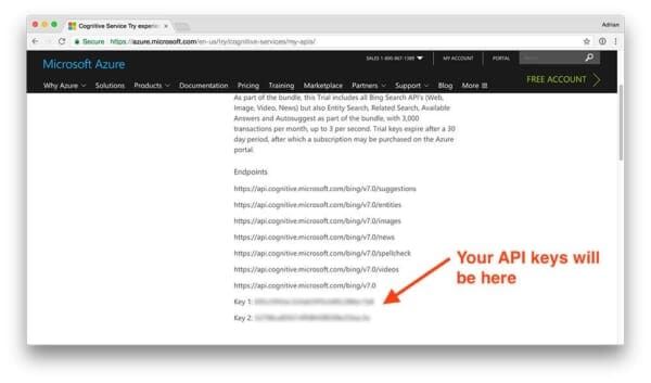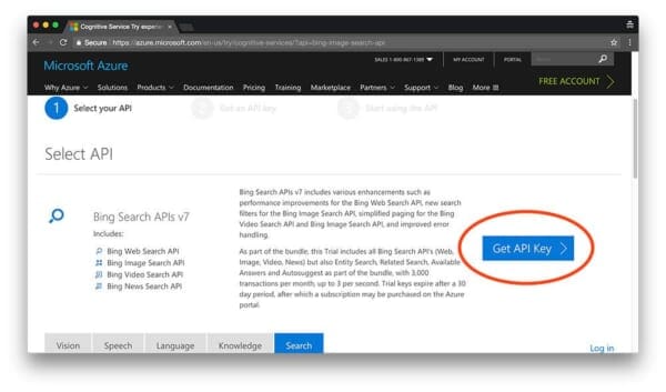 In this section, I’ll provide a short walkthrough of how to get your (free) Bing Image Search API account.