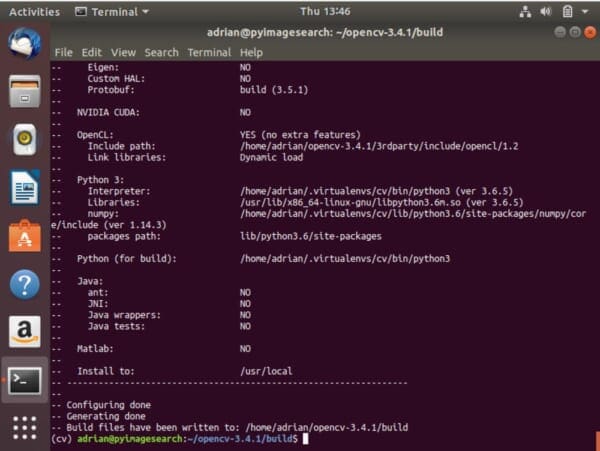 Step #4: Configure and compile OpenCV for Ubuntu 18.04