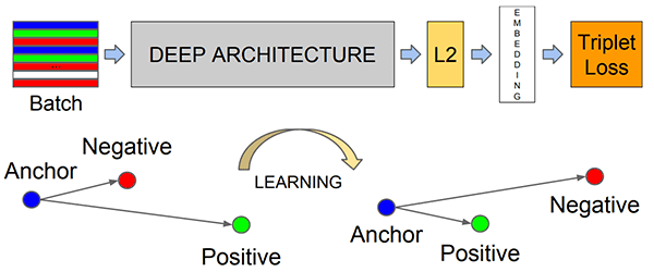To train a face recognition model with deep learning, each input batch of data includes three images: