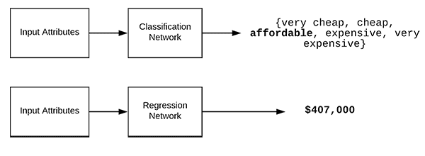 For example, classification may be able to predict one of the following values: {cheap, affordable, expensive}.