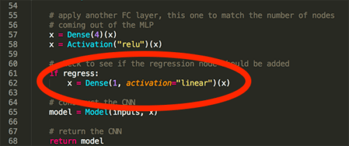 As you’ll find out in the rest of today’s tutorial, performing regression with CNNs and Keras is as simple as: