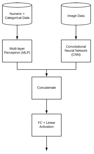 Two branches of a network will be defined to handle each type of data. The branches will then be combined at the end to obtain our final house price prediction.