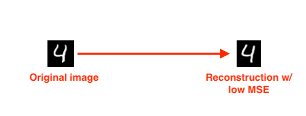 We would expect the autoencoder to do a really good job at reconstructing the digit, as that is exactly what the autoencoder was trained to do — and if we were to look at the MSE between the input image and the reconstructed image, we would find that it’s quite low.