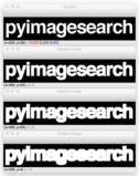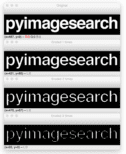 On the very top we have our original image. And then underneath the image, we have the logo being eroded a total of 1, 2, and 3 times, respectively. Notice as the number of erosion iterations increases, more and more of the logo is eaten away.