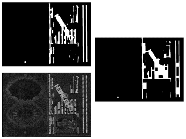 The result of these operations can be seen in Figure 4. Notice how the MRZ region is a large rectangular blob in the bottom third of the image.
